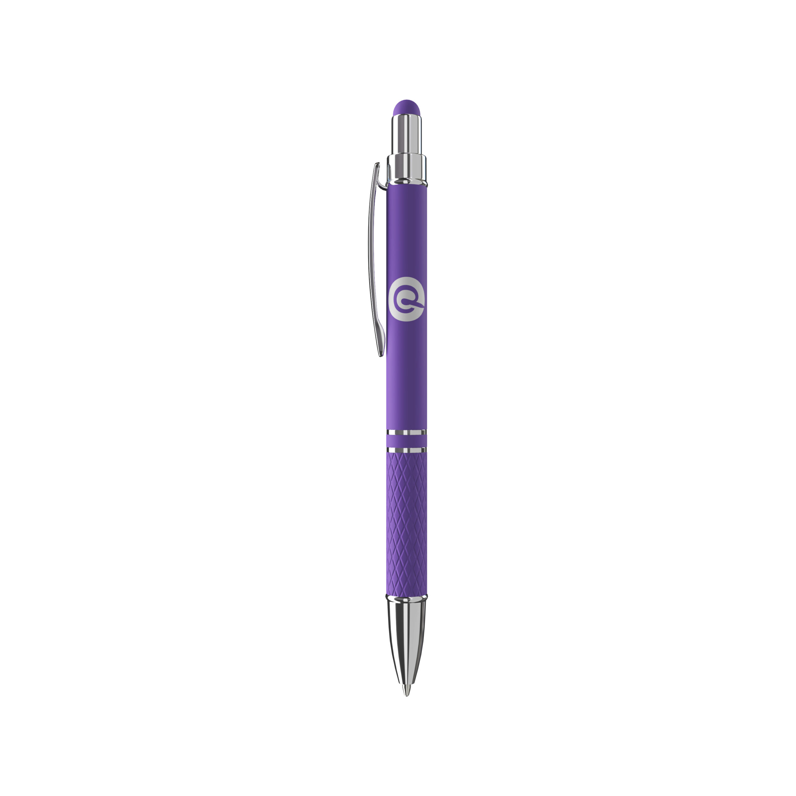 Elevate your writing with the Ava Rubberized Ballpoint Stylus Pen. This push action plastic pen is crafted for style and comfort and its rubberized body, metal clip, and chrome accents exude sophistication. The matching rubberized grip and integrated stylus enhance usability, while blue SureWrite low lead ink flows smoothly for a refined writing experience. Decorate with default silk screen on the side of the barrel. 5.7500″ L x 0.0000″ W x 0.0000″ H