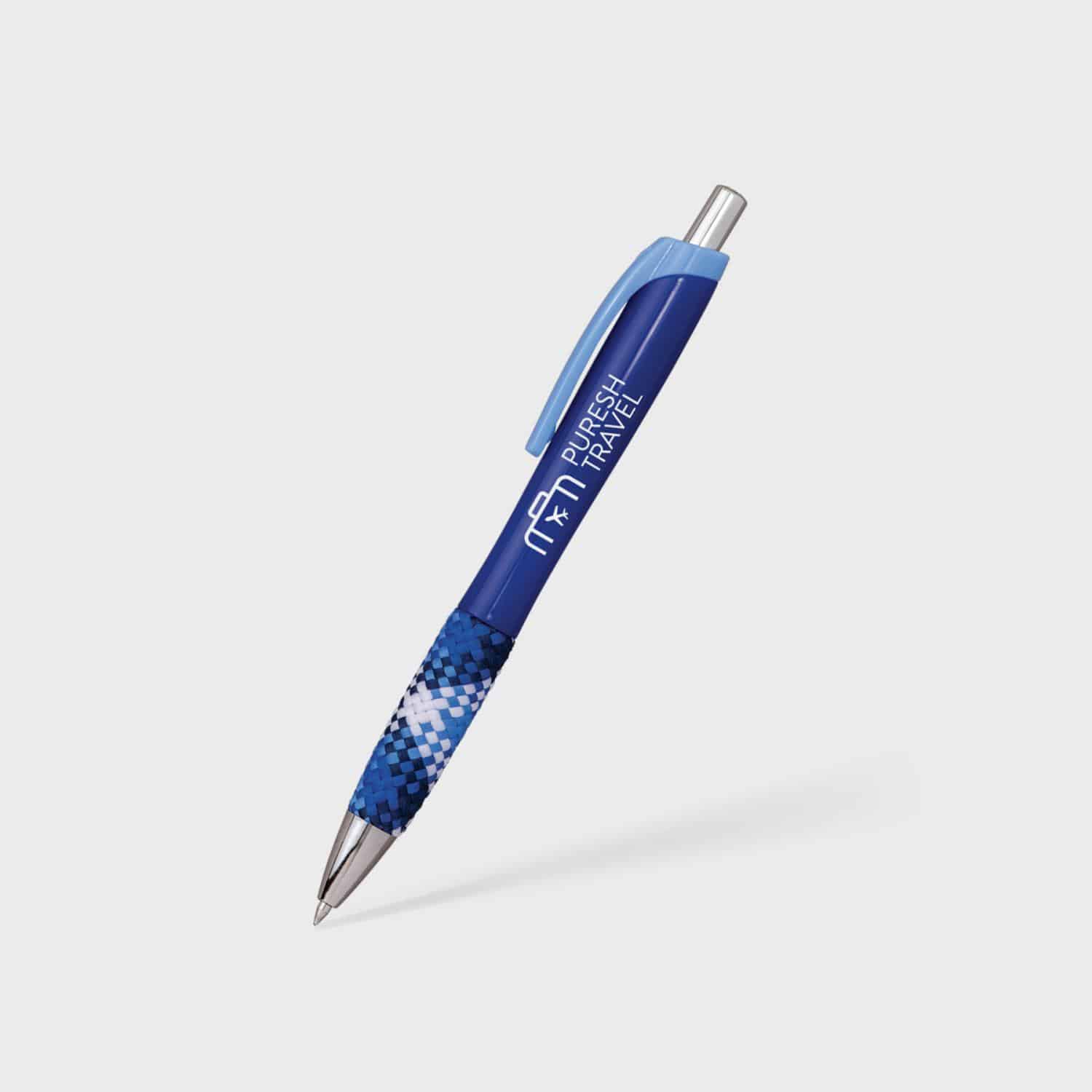 This pen is dressed to impress with colorful plaid fabric on its jumbo grip! The ergonomic shape & smooth writing gel ink offer a satisfying writing experience. Add your brand to a fun & unique pen with a large imprint area. Complies with Prop 65. 5.6″ L x 0.375″ Diameter