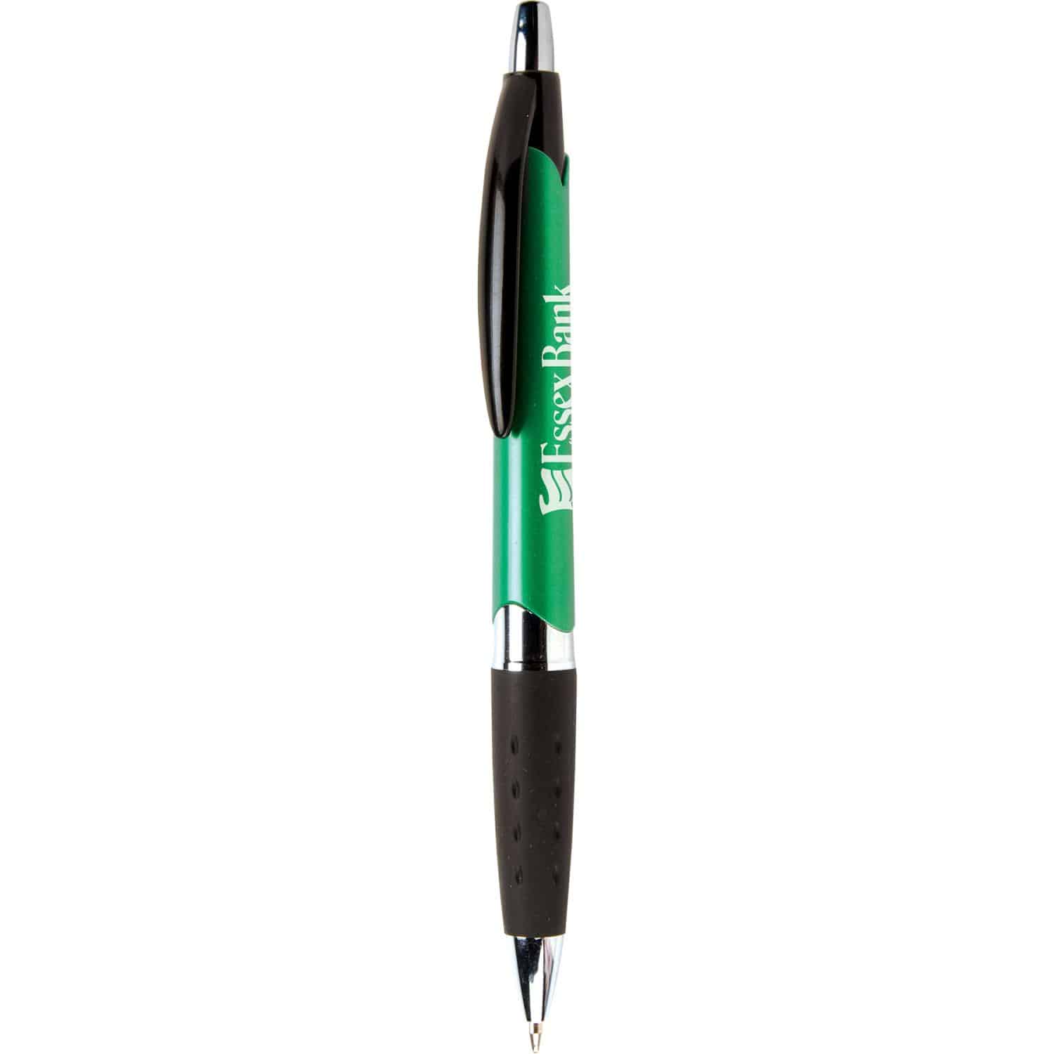 Jumbo barrel in pearlized corporate colors with a generous imprint area. Shining chrome cigar band trim sets off imprint. Dimpled black rubber grip provides writing comfort. Super smooth black ink. Complies with Prop 65. 5.58″ L x 0.4″ Diameter