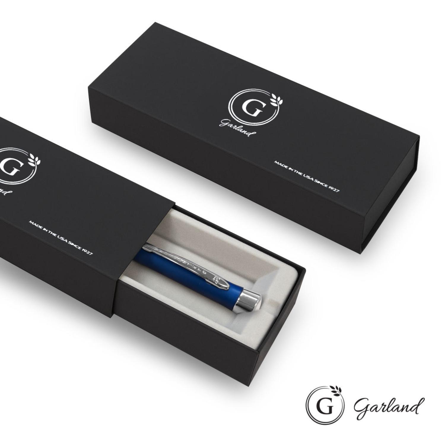 The all-brass chrome-plated Signature Collection is elegant and refined. Available in ballpoint, rollerball, 0.7mm mechanical pencil and rollerball/pencil set. Your purchase includes a high-resolution, CMYK logo dome top and one location laser engraving. Established in 1926, Garland pens feature brass internal components and are guaranteed for life, representing a true standard of American craftsmanship.Pen Size: 5.4″ W x 0.475″ H. 5.4″ W x 0.475″ H