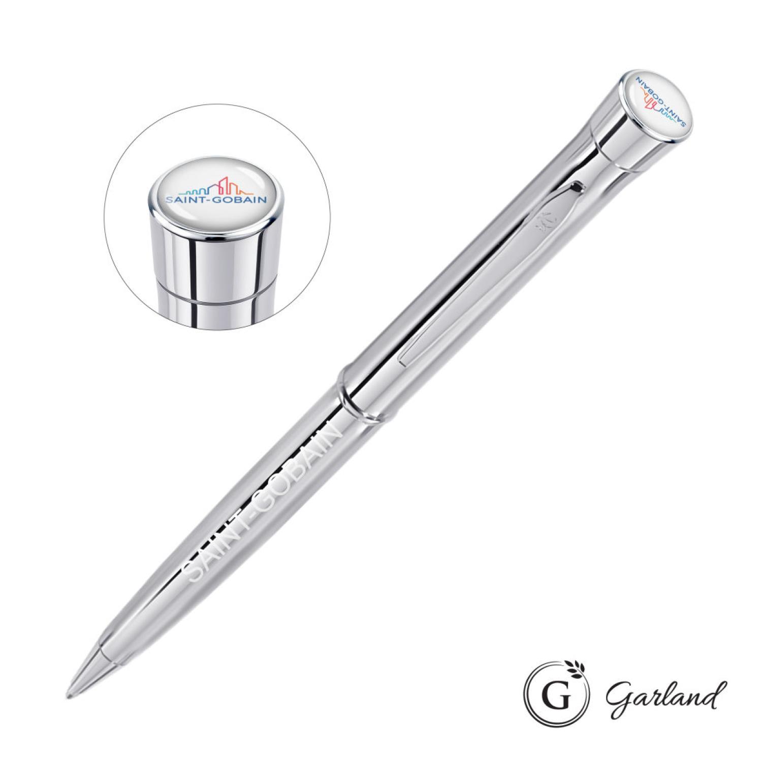The all-brass chrome-plated Signature Collection is elegant and refined. Available in ballpoint, rollerball, 0.7mm mechanical pencil and rollerball/pencil set. Your purchase includes a high-resolution, CMYK logo dome top and one location laser engraving. Established in 1926, Garland pens feature brass internal components and are guaranteed for life, representing a true standard of American craftsmanship.Pen Size: 5.3″ W x 0.475″ H. 5.3″ W x 0.475″ H
