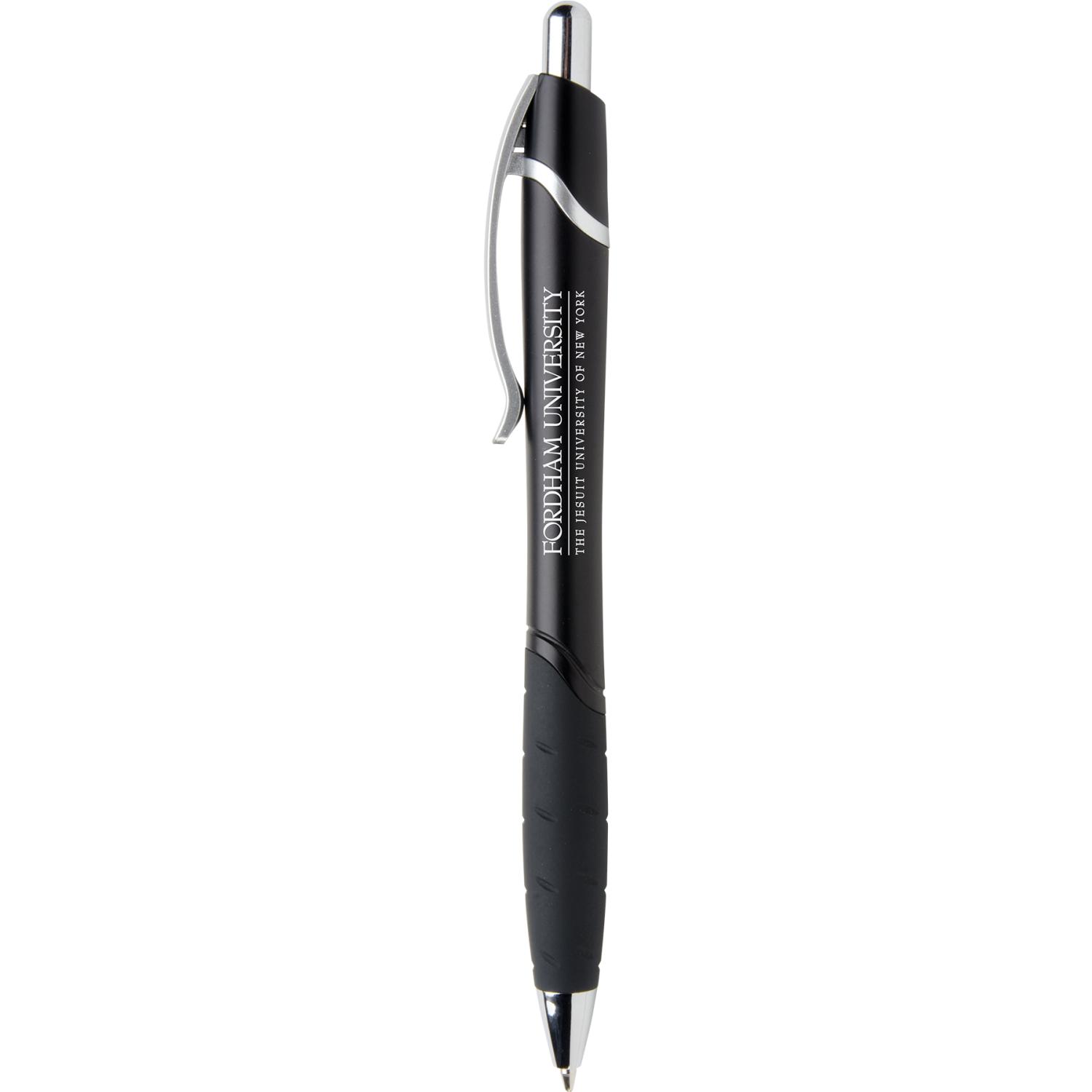 Ergonomic styling in metallic jewel tones with silver accents and textured jumbo rubber grip gives this pen and edge on the competition. Black anti-fraud ink. Complies with Prop 65. 5.59″ L x 0.39″ Diameter