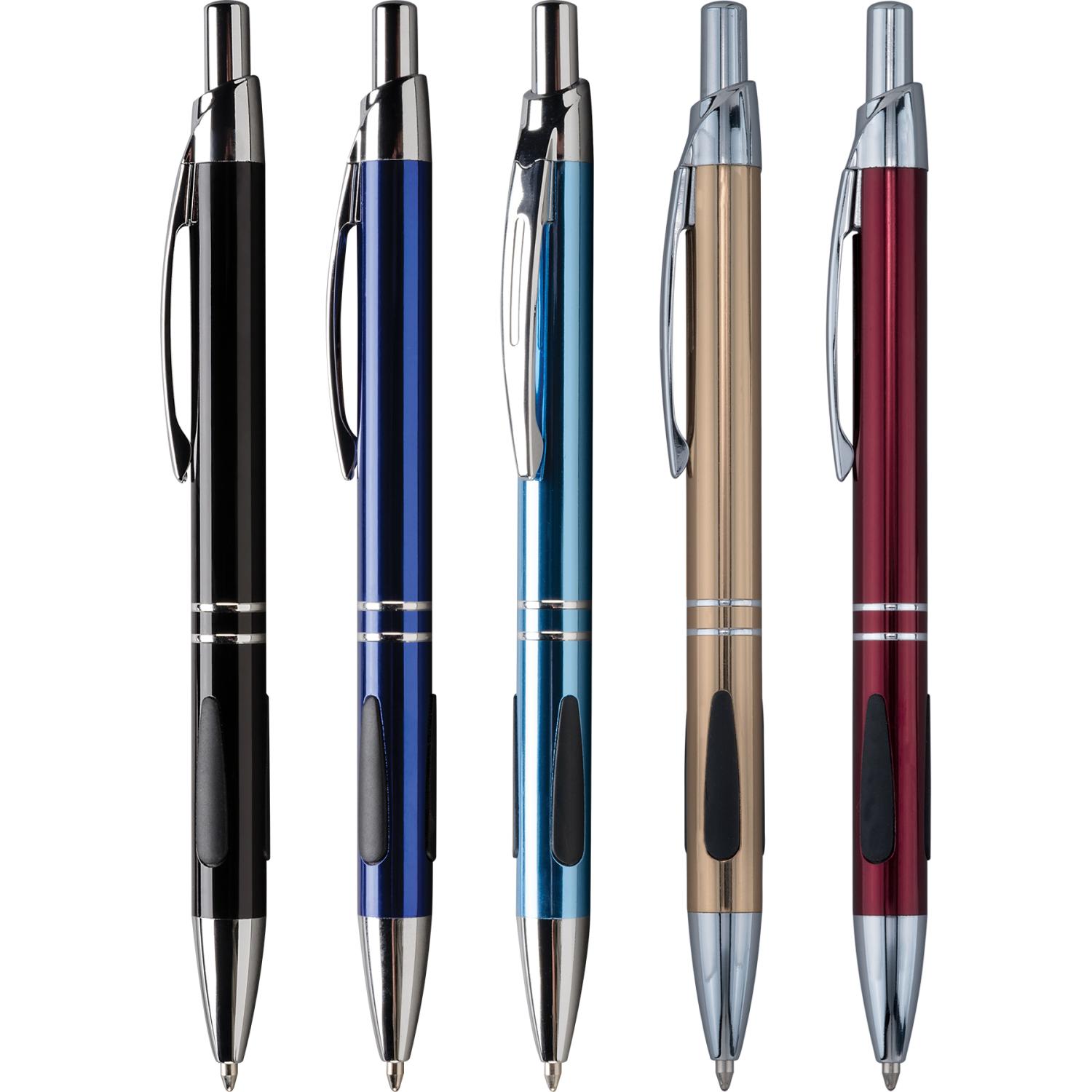 Sleek European styling in high gloss, high fashion colors complemented by shining silver trim & raised teardrop grippers. Your choice of blue (default) or black writing ink. Black ink is anti-fraud. Complies with Prop 65. 5.6″ L x 0.4″ Diameter