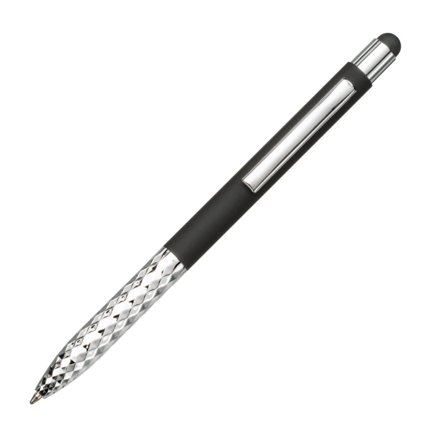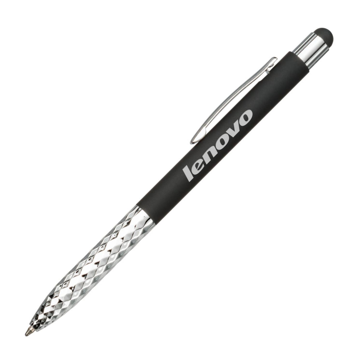 The Weston Aluminium Ink Pen offers a unique design will providing a smooth writing experience! This pen features a rubber stylus at the top, a soft-touch upper barrel, and a shining chrome aluminium lower barrel with a diamond pattern. Product Size: 5.75″ W x 0.5″ H. 5.75″ W x 0.5″ H